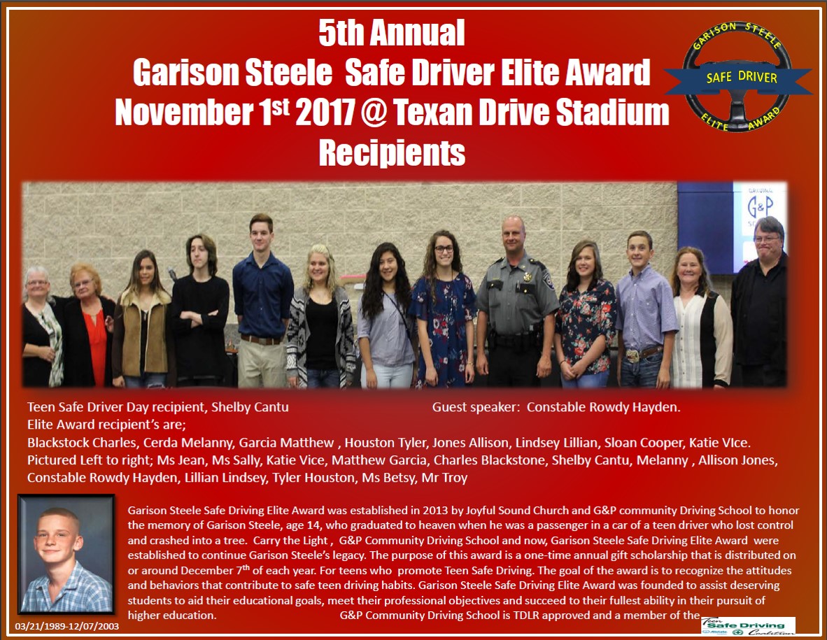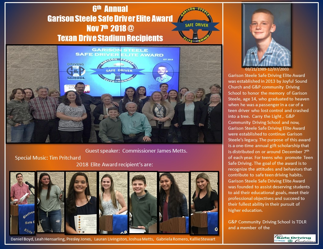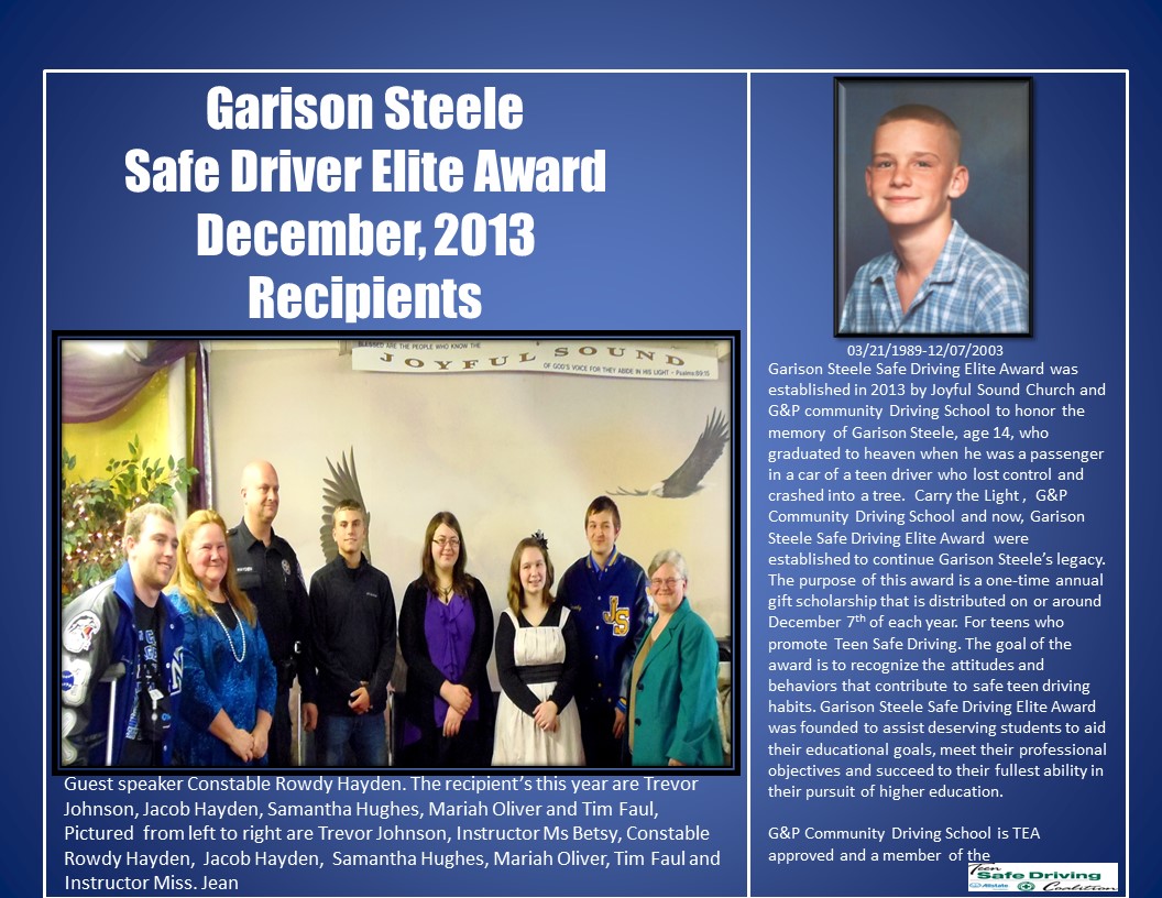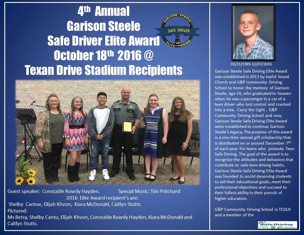 Scholarships Garison Award Application (Click image to download) Our Scholarship Winners Winners Start Driving School today! Get Started Register