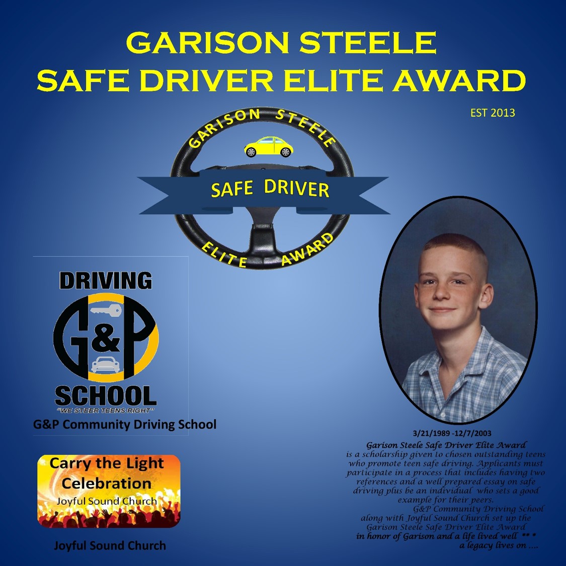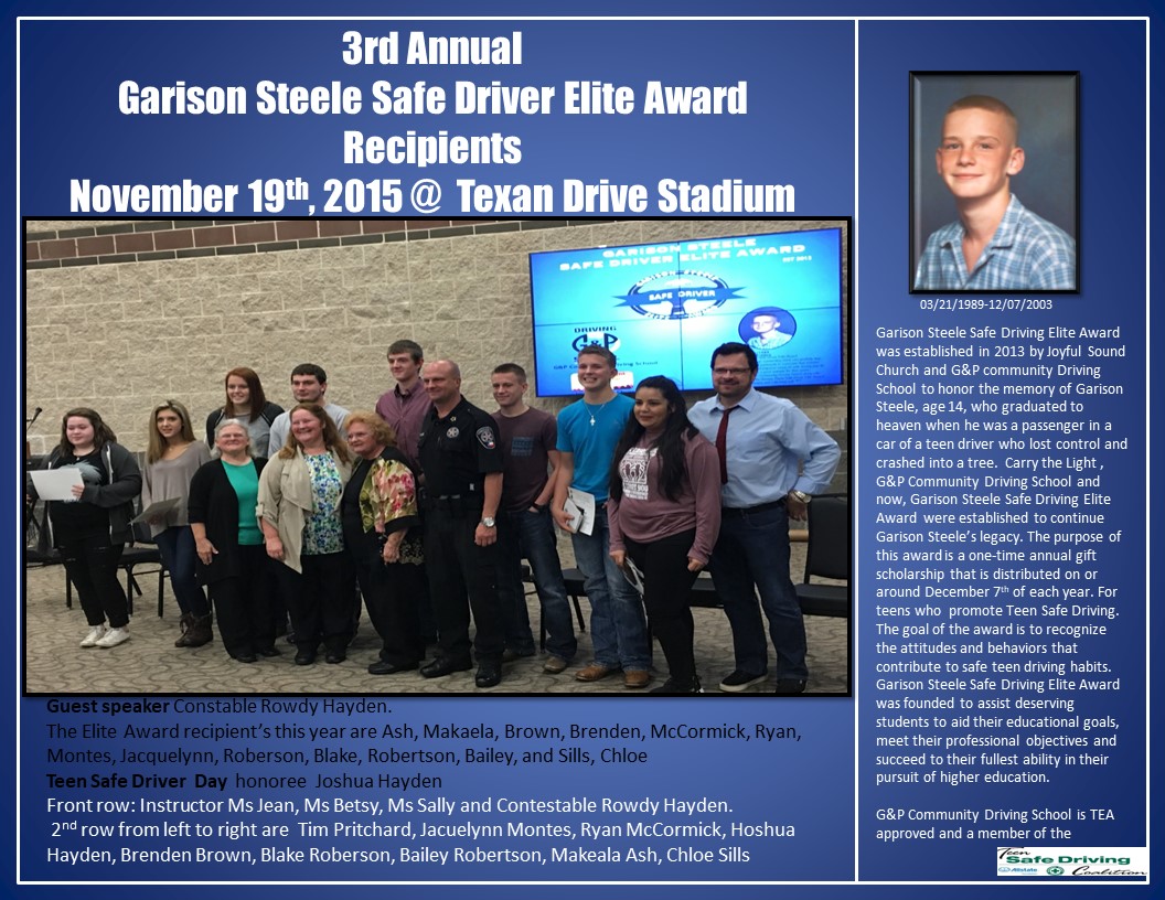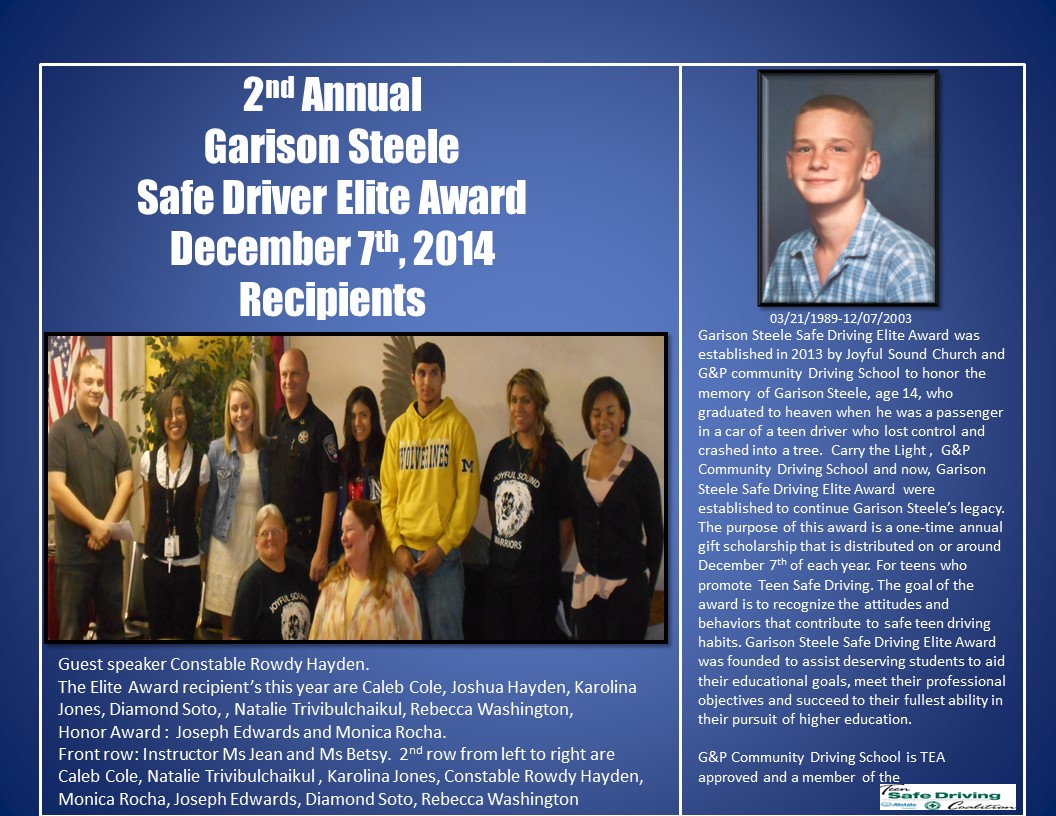 Scholarships Garison Award Application (Click image to download) Our Scholarship Winners Winners Start Driving School today! Get Started Register